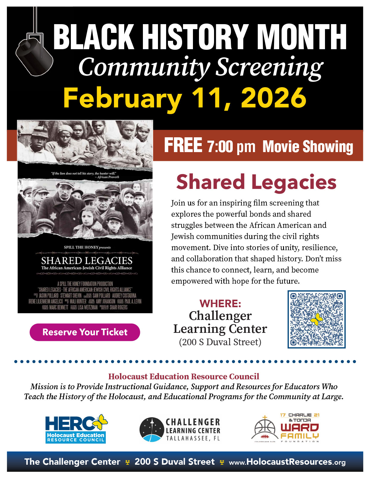 11feb7:00 pm7:00 pmBlack History Month Community Screening: Shared Legacies7:00 pm - 7:00 pm(GMT-05:00) Challenger Learning Center, 200 S. Duval Street
